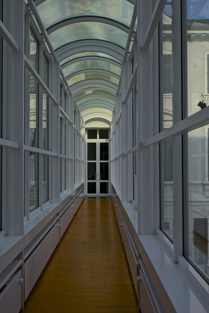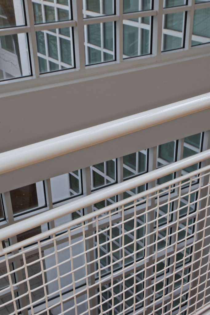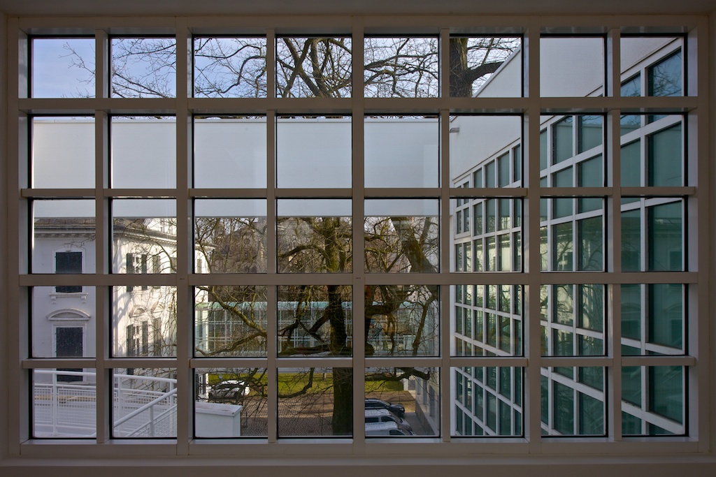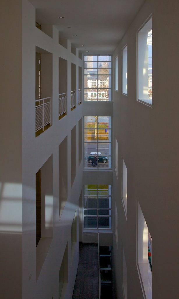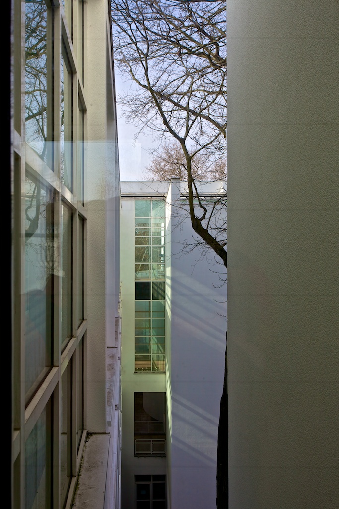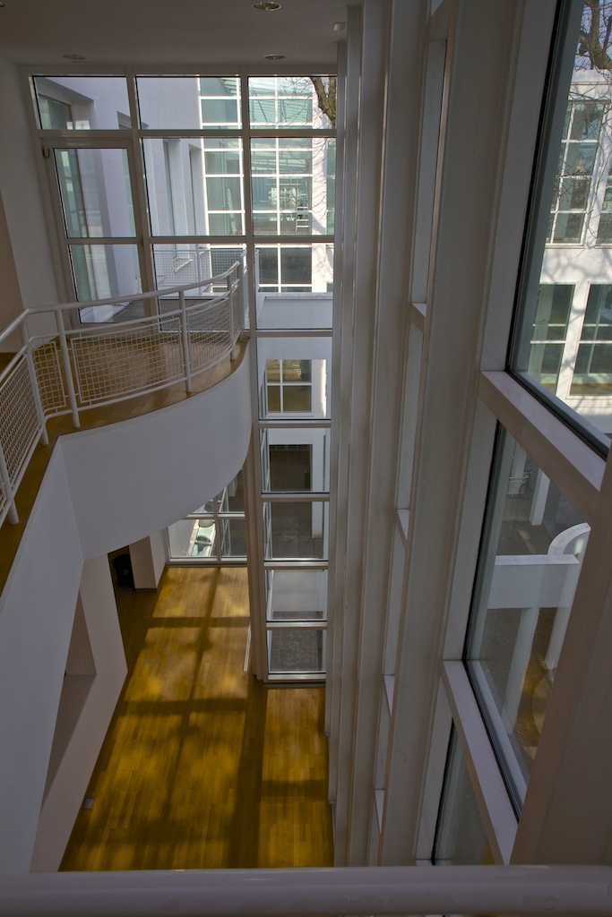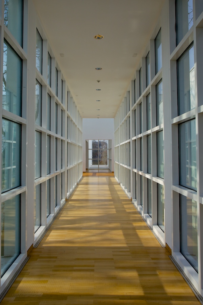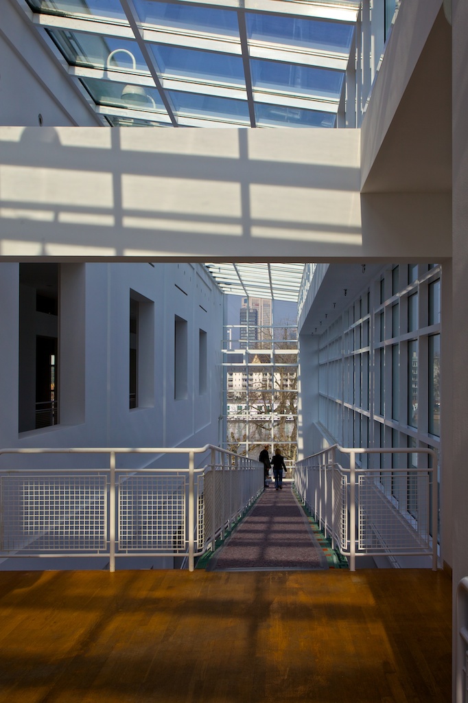 Nach dreimonatiger Umbau- und Renovierungspause öffnete im Jahr 2013 das Museum für Angewandte Kunst (MAK) Frankfurt wieder für Besucher – das jedoch nur kurz. 27 Jahre nach seiner Errichtung glänzte der Richard-Meier-Bau des Museums nun wieder im Originalzustand. In Vorbereitung auf die geplante Wiedereröffnung des Hauses Ende April waren sämtliche Verbauungen entfernt, Sichtachsen und Ausblicke geöffnet, die Transparenz des Gebäudes wieder hergestellt, und das Weiß der Räume erneuert worden. Eine wunderbare Möglichkeit, die Blickwinkel fotografisch zu erfassen.